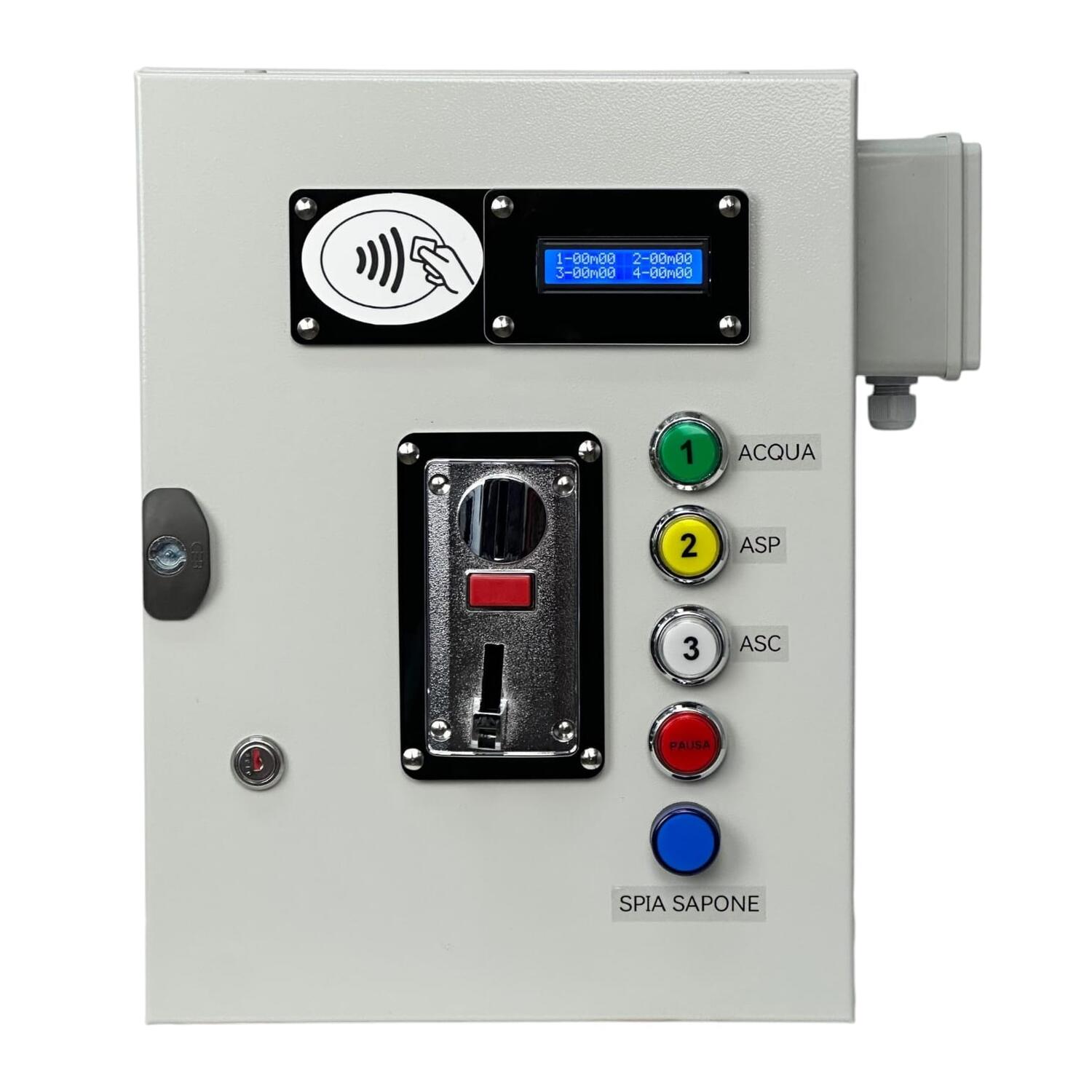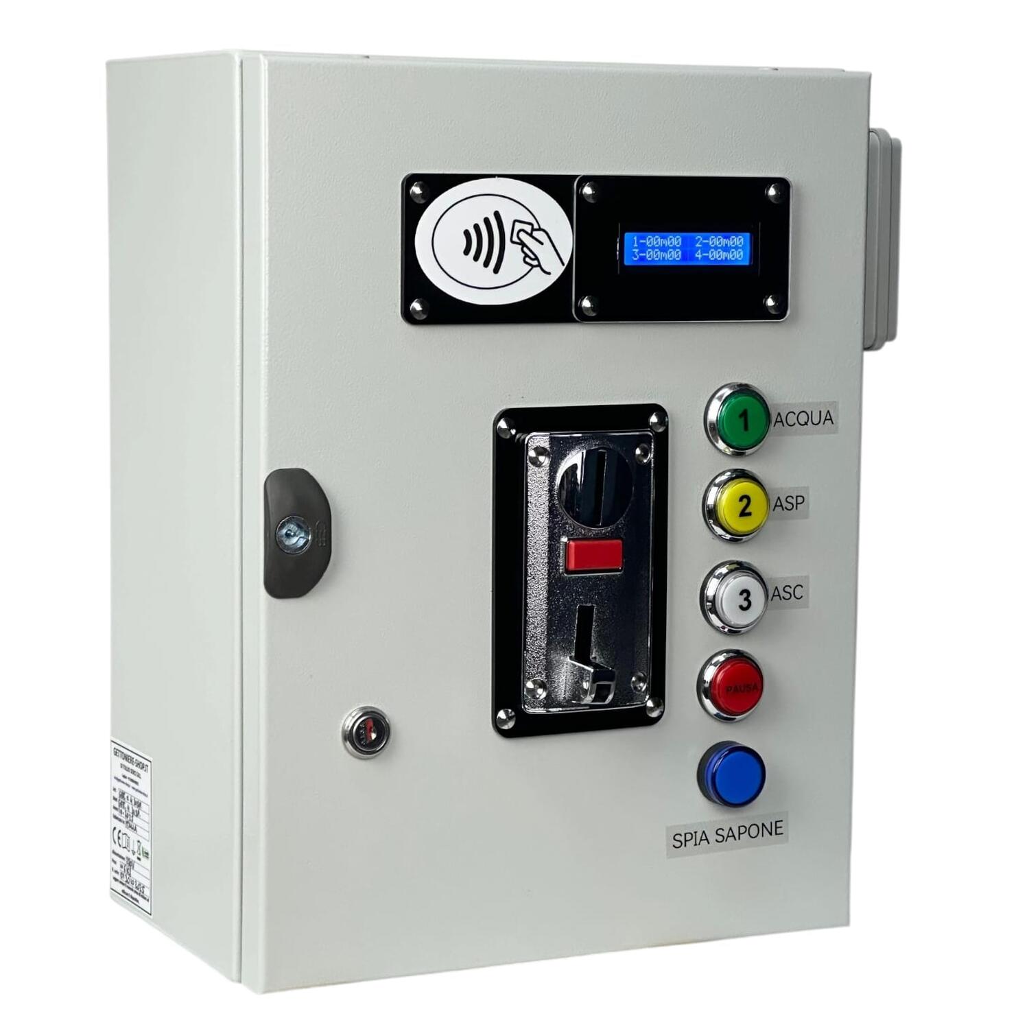 Gettoniera + Lettore RFID per 3 Dispositivi con Funzione “Acqua + Sapone”