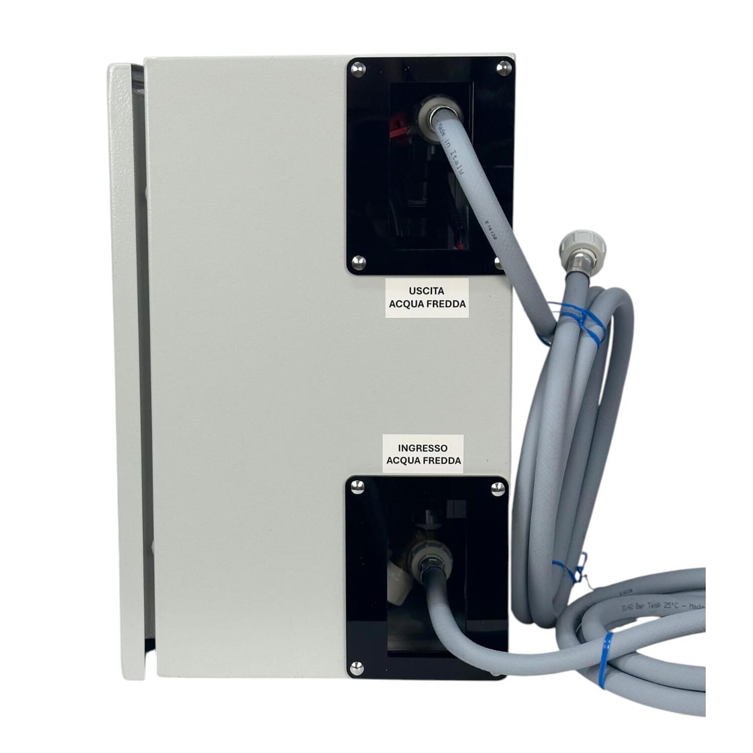 - 1 Pulsante per il controllo acqua che comanda elettrovalvole a 12Vcc