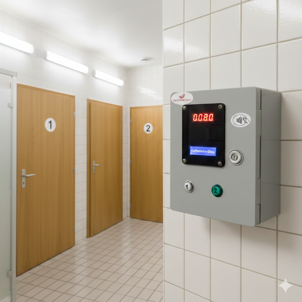 - Funzione di blocco dei pulsanti (con contatto NC) che disabilitano il pulsante quando il bagno è occupato. Il dispositivo di segnalazione del bagno occupato NON è incluso.
