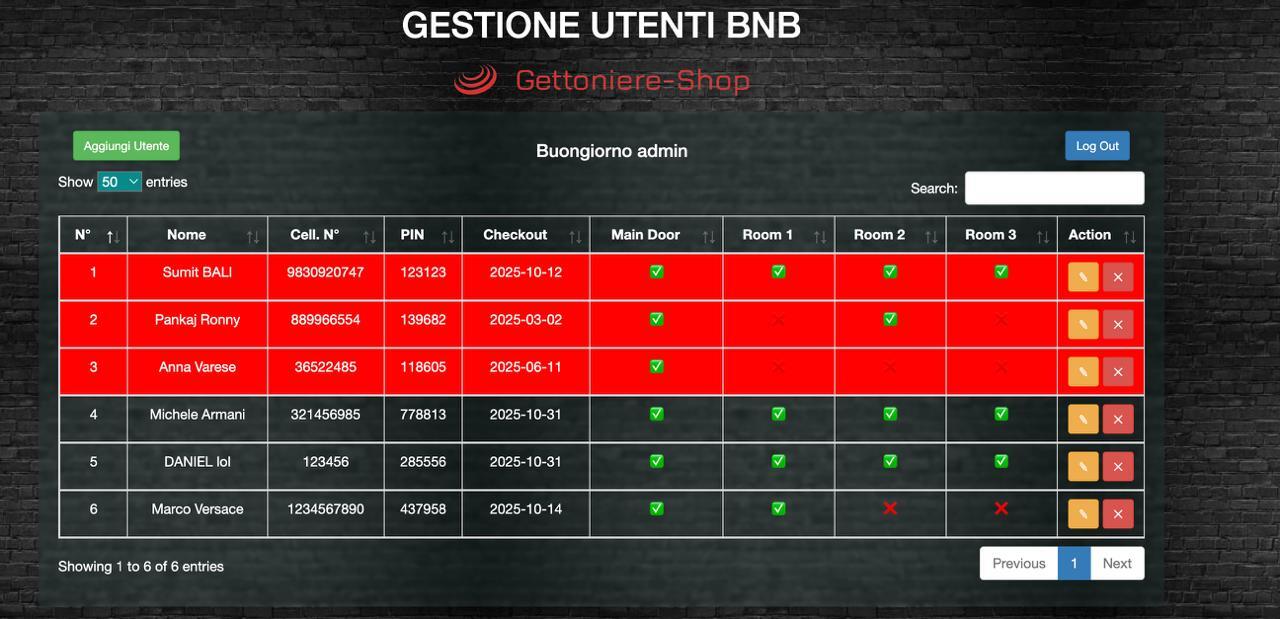 Dal pannello gestionale online puoi visualizzare tutti gli ospiti, i PIN assegnati e le porte abilitate.